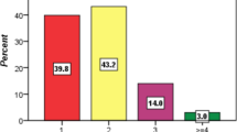 One or more antibiotic was prescribed during 36.9 % (n = 299) of all patient encounters. As a measure of antibiotic overuse, this value is close to the WHO standard, which recommends antibiotic prescriptions not exceed 30 % of patient encounters [11]. Our value fared much better in comparison to antibiotic prescription rates in pediatric settings in other developing countries like Sudan (81.3 %), Nigeria (71.1 %), and India (81.1 %) [14–16]. In higher income countries, these values ranged in pediatric settings from 18.5 % in Saudi Arabia, to 44.6 % in United Arab Emirates, and 85 % in Jordan [12, 13, 17]. Two or more antibiotics were prescribed in only 6.4 % (n = 52) of all encounters, suggesting that when antibiotics were prescribed in our sample, usually a single antimicrobial was used. The average duration of antibiotic therapy was 5.73 days (s = 3.53 days).