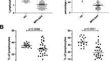 To address the question whether current immunosuppressive treatment influences the imbalance in TEM1 and TEM17 cell subsets, r-GPA patients were separated into patients not receiving immunosuppressive treatment (off treatment; n = 34), and patients that did receive immunosuppressive treatment (on treatment; n = 29) (Fig. 1c). No significant differences were observed in the frequencies of TEM1 cells between the untreated and treated r-GPA patients (median 12.3%, interquartile rang 9.5–17.8% vs 9.0%, 5.6–19.2%). In addition, no significant differences were detected in the frequencies of TEM17 cells between untreated and treated r-GPA patients (22.3%, 18.0–26.5% vs 26.5%, 17.2–35.4%). Therefore, immunosuppressive treatment at time of sampling was not responsible for the imbalances observed between the TEM1 and TEM17 cell subsets.