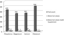 All patients received continuous cardiac monitoring on the adolescent medicine service. Patients were admitted for telemetry with constant provider monitoring of heart rhythm if they met any of the following criteria: 1) heart rate ≤ 35 beats per minute with no ventricular ectopic beats, 2) heart rate ≤ 40 beats per minute with simple ventricular ectopy, 3) complex ventricular ectopy including ventricular couplets or triplets, ventricular tachycardia, or atrioventricular block with any type of baseline heart rate, 4) QTc or QT interval >550 ms on baseline ECG if bradycardic, 5) QTc or QT interval >500 with normal or elevated heart rate or with known history of purging, 6) severe electrolyte abnormalities such as potassium <2.5, phosphorus <2.5, magnesium <1.5, or 7) recent unexplained syncope. If admitted to telemetry, the protocol was still initiated as otherwise described. For all admissions, electrolytes were monitored frequently (at least daily) upon admission and then less often after electrolytes stabilized. Hypokalemia was defined as potassium <3.2 mmol/L [40], hypophosphatemia was defined as phosphorus <3.0 mg/dL [1], and hypomagnesemia was defined as magnesium <1.5 mg/dL. The definition of hypomagnesemia was based on the laboratory reference range at our institution due to lack of a consensus definition in the literature.