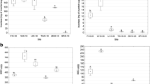 The results that are shown in Fig. 5a, b demonstrate that the indicators AWCD and R that were used in the evaluation of soil microbial activity and functional diversity, respectively, were lowest in the soil under the direct influence of sediment (S). The highest values of AWCD and R indices were observed in the control soil collected from areas that were not exposed to industrial pollution. Significant inhibition of total metabolic activity, as expressed by AWCD index, observed in the areas under the direct influence of sediment compared with other treatments, could indicate lower maintenance energy due to the microbial community stress caused by heavy metals (Zn, Pb) contamination. Three times higher values of AWCD in surfaces on the sandy substrate located in the distance of 500 m (SS1) and 1500 m (SS2) from the sedimentation pond and surfaces of the loam substrate (LS), compared with the S sampling point may indicate a greater adaptive capacity and faster use of carbon substrates by soil microbial communities. However, the demonstrated results for the abovementioned sampling points were still significantly lower than in the reference control soil. The results of richness indicate that the functional response of microbial populations was similar in samples C, SS2 and LS while they differed significantly from S and SS1.