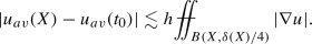 For a fixed point \(X\in {\mathcal {O}}\) and let \(h=\delta (X)\). Using the fundamental theorem of calculus we clearly see that this average is related to the average defined in (3.9) and we will have for u on the time slice \(t_0\) (slightly abusing the notation):