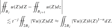where [Y, T(Y)] is the line segment from Y to T(Y). Averaging Y over \(B_j\), using the triangle inequality, and observing that the collection of lines [Y, T(Y)] is contained in \(2B_j\), gives us what we want.