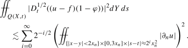Similarly, assume a well-defined notion of fractional half-regularity of f in the t-variable and call the resulting space of functions \(\dot{{\mathcal {X}}}^p_{1,1/2}\). When \(\Omega \) is a time cylinder the space \(\dot{{\mathcal {X}}}^p_{1,1/2}\) has to coincide with the space \(\dot{L}^p_{1,1/2}(\partial \Omega )\) defined earlier.
