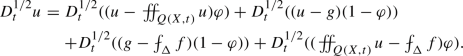Here we used a shortcut by denoting \(f=u\circ \pi \) which makes sense since \(u\big |_{\partial \Omega }=f\). We denoted by g the moving average of u over regions Q(X, t), that is for \(r=\delta (X,t)/4\)
