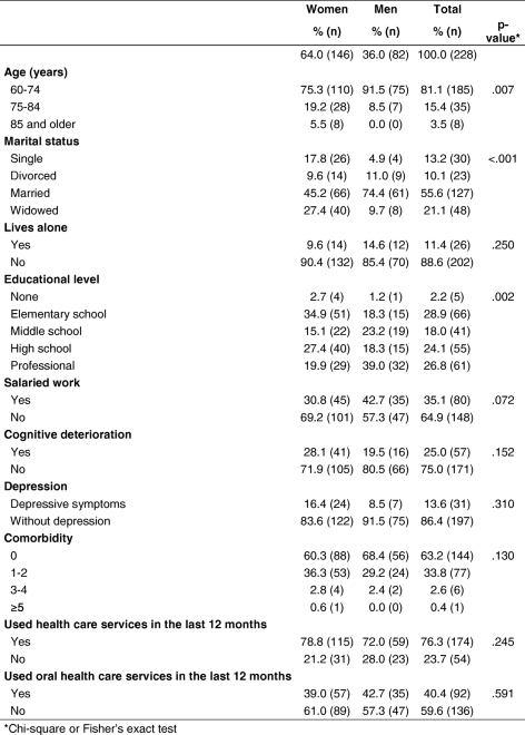 Table 1 Characteristics of the study sample of older adults