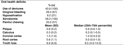 Table 2 Oral health deficits in of the study sample of older adults
