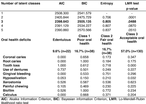 Table 3 Goodness of fit of the latent class model and conditional probability associated with oral health