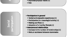 Sport participation for people of all ages is associated with an array of psychosocial health benefits including resilience, improved mental health, a sense of belonging, higher levels of self-efficacy, reduced stress, enhanced coping and positivity [31,32,33,34,35,36,37]. Considering these benefits, it is not surprising that people participating in sport report better HRQoL than the general population [17, 38]. The psychosocial and HRQoL benefits associated with sport participation are greater than those associated with physical activity participation alone [31, 39]. However, athletes may struggle psychologically and socially when transitioning out of sport. Reported challenges include a change in athletic identity, a loss of camaraderie and minimal support systems [40, 41]. Adapting to life post-sport appears more difficult when an athlete is retiring involuntarily due to injury or deselection [41]. Forced retirement from sport can result in high levels of negative emotions, social exclusion, a loss of identity and a sense of betrayal [8]. In contrast, voluntary retirement and achievement of sporting goals are associated with a positive experience of transition from sport [8, 42]. Research suggests that accomplishment and positive sporting memories could benefit QOL and life satisfaction in later life, irrespective of joint pain or osteoarthritis [30, 43].