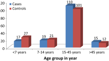 Multiple factors were associated with illness in bivariate analysis. Variables with p < 0.2 were entered into multivariable analyses (Table 3). In multivariable analysis, cases had 73% lower odds (AOR = 0.27, 95% CI 0.11–0.66) of using protective clothing during the night compared with controls. Cases had 75% lower odds (AOR = 0.25 95% CI 0.11–0.61) of having waste collection material in their house than controls, and 75% lower odds (AOR = 0.25 95% CI 0.08–0.75) of knowing the mode of malaria transmission than controls. Cases also had nine-fold higher odds (AOR = 9.08 95% CI 3.6–22.93) of having mosquito breeding sites around their homes than controls, and nearly four times higher odds (AOR = 3.7 95% CI 1.44–9.56) of staying outdoors overnight than controls (Table 3).